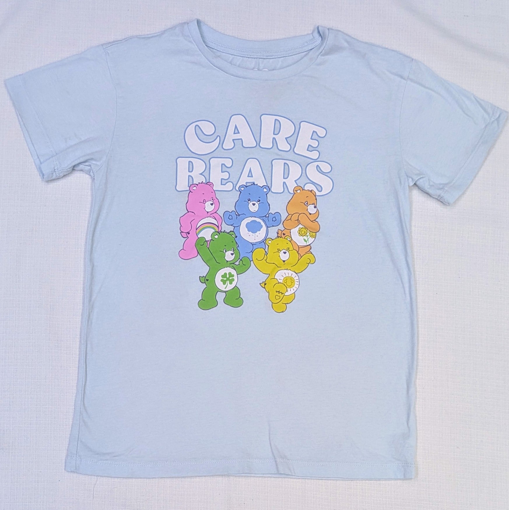 Snuggle up with cuteness in this Blue Care Bears baby tee! Perfect for kids size Large (10/12), this shirt will spread love and cheer wherever you go. Bring a smile to everyone's face with the playful and quirky Care Bears design. (Warning: High levels of cuteness may induce uncontrollable laughter.)