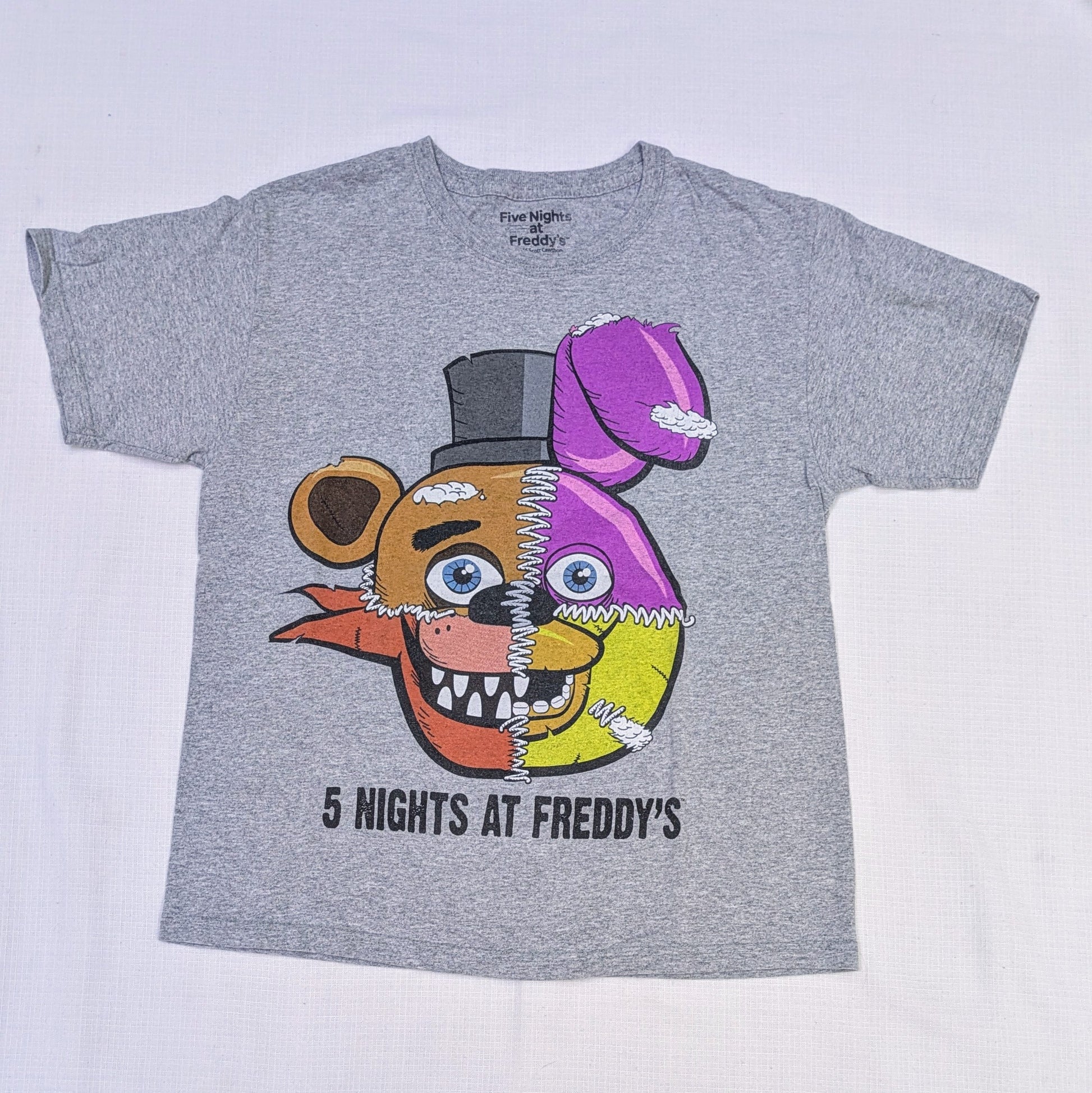 Looking for a cool kids' shirt? Look no further than this grey Five Nights at Freddy's tee in size L! Perfect for fans of the popular video game, this shirt combines comfort and style. Get ready for some serious playtime!