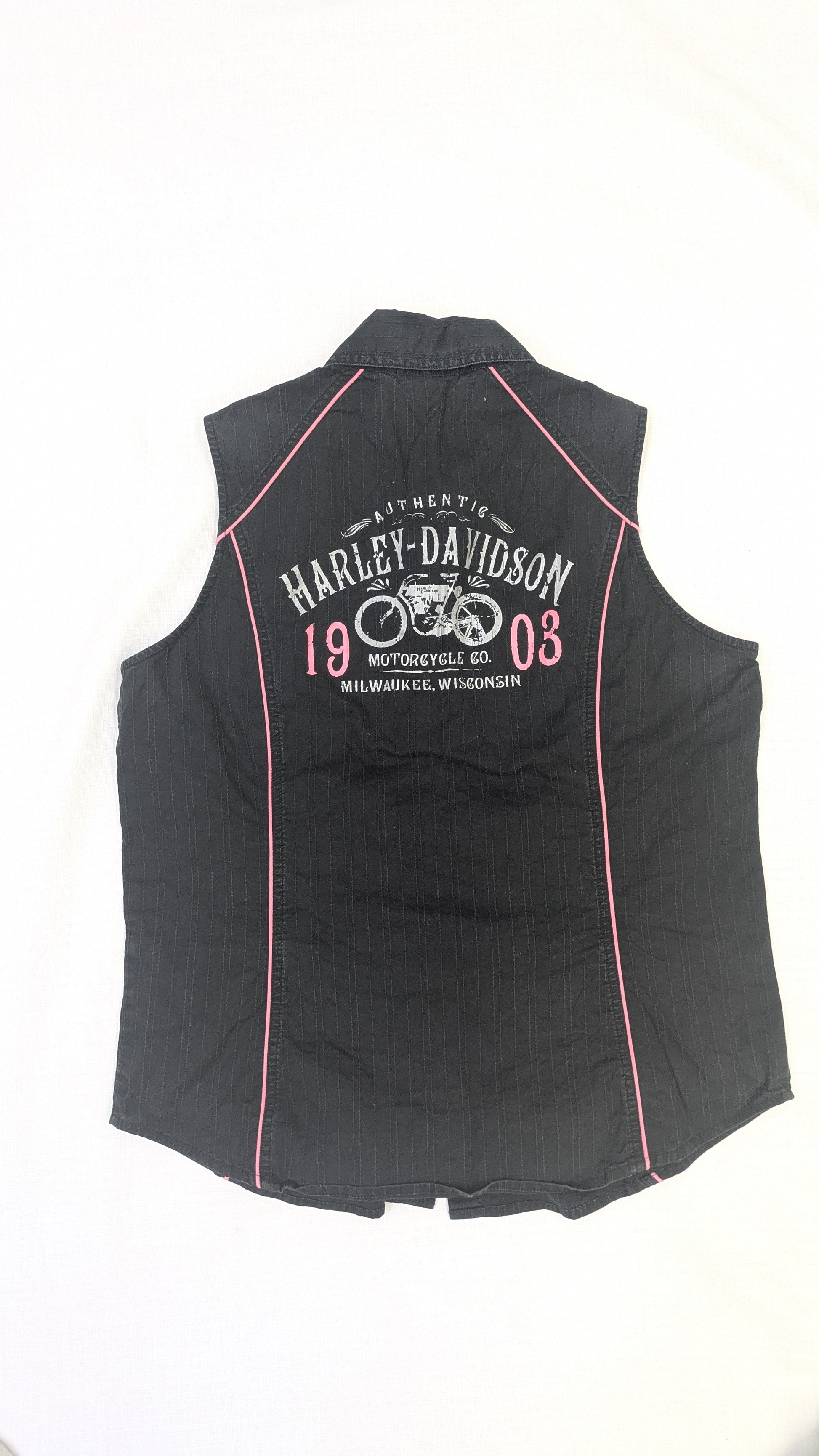 Black pin and white ladies Harley Davidson button up vest