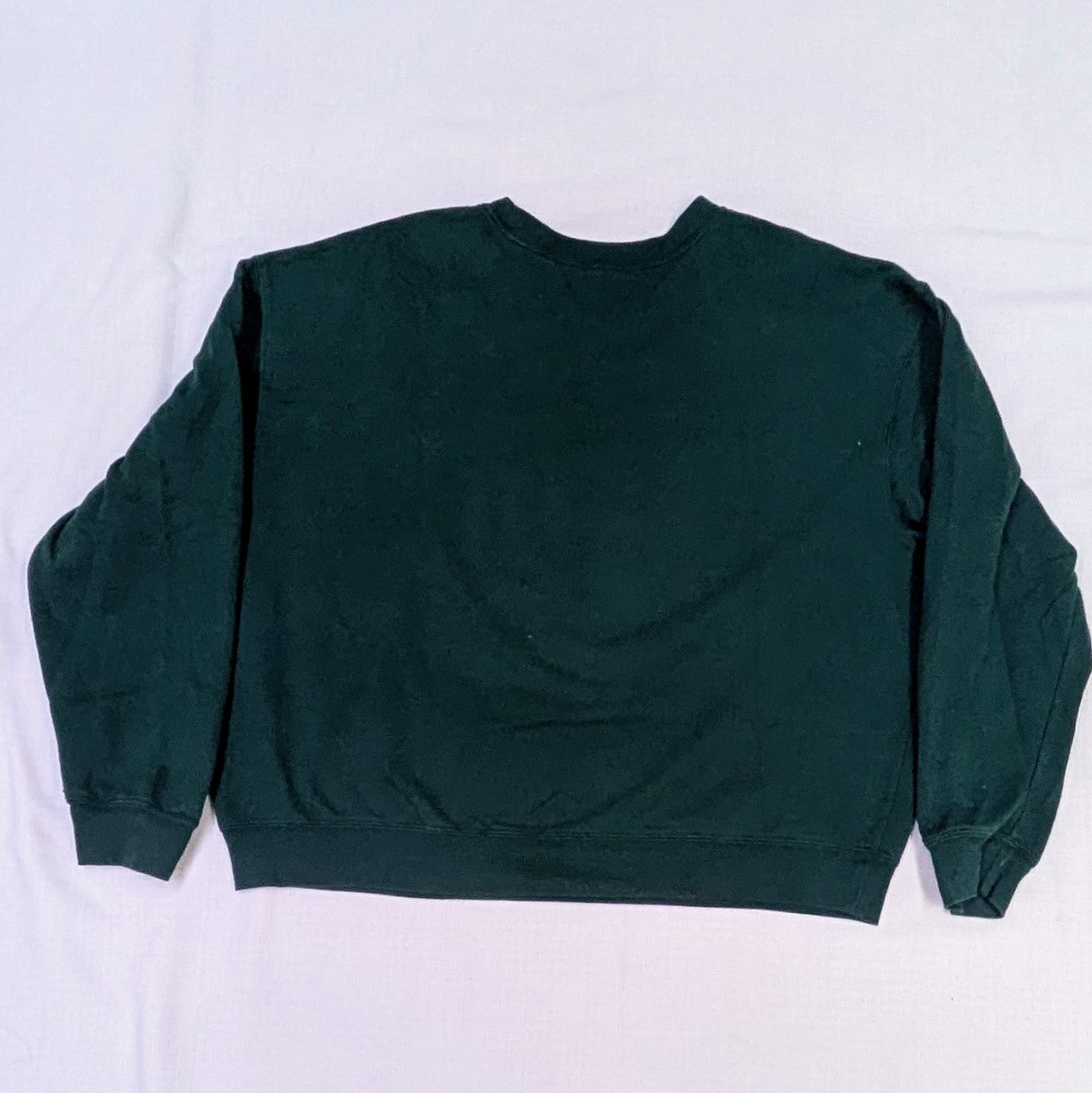 Get wacky with this Looney Tunes crewneck sweatshirt in dark green. Perfect for adding a playful touch to your wardrobe, this sweatshirt features all your favorite cartoon characters in a quirky design. Be the talk of the block with this Looney Tunes piece!
