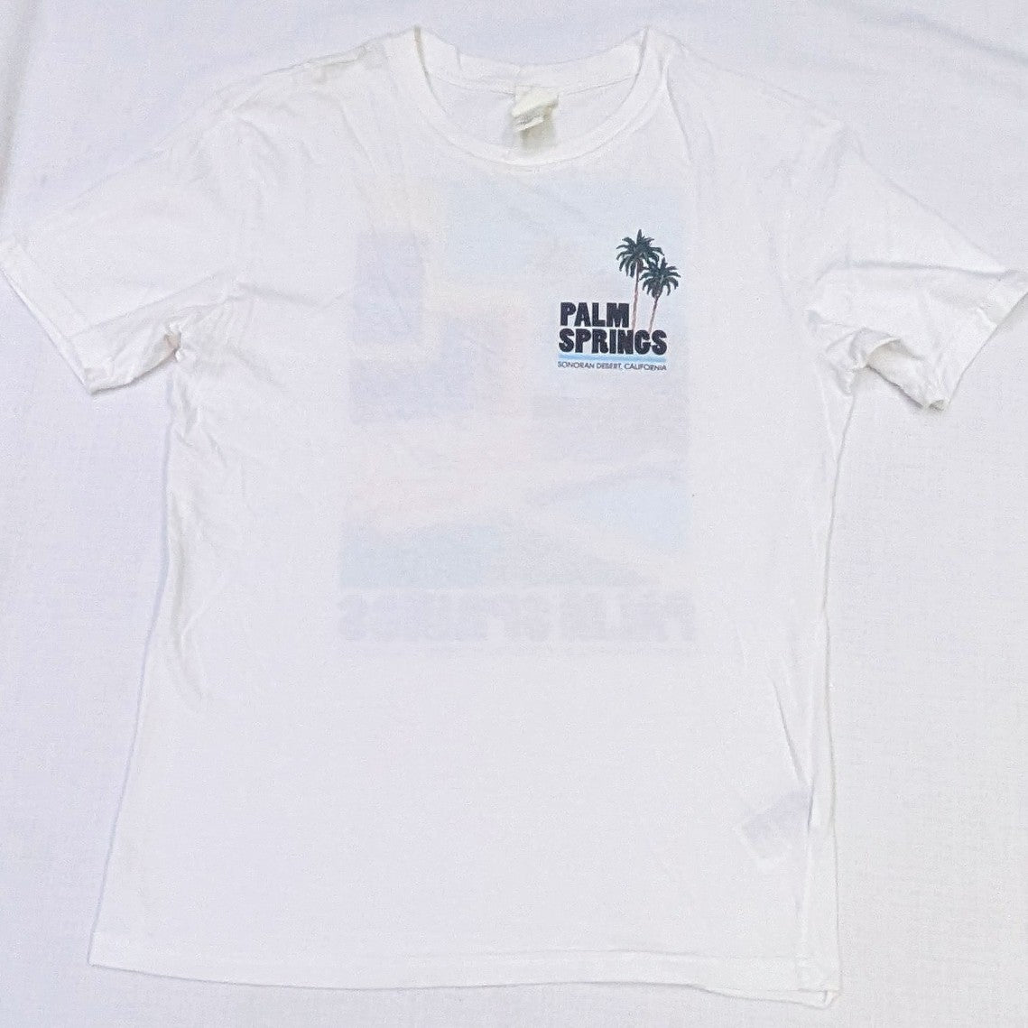 Dive into style with our Palm Springs graphic tee! White tee Featuring a modern pool hose graphic on the back, this tee is sure to make a splash. Perfect for any casual occasion. In good used condition